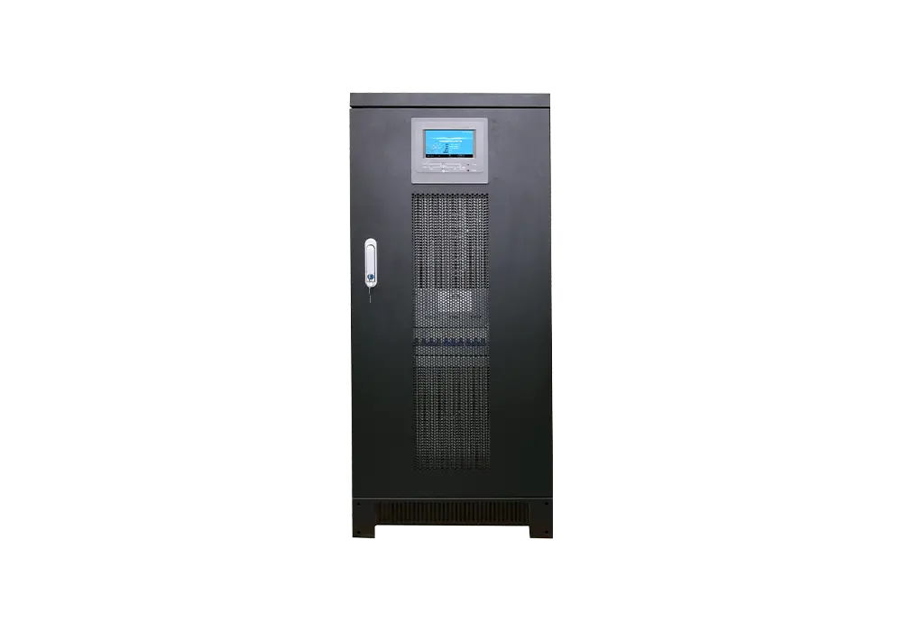 En SAI trifásico con transformador SCR de baja frecuencia serie SY-G es una solución de alimentación industrial robusta y fiable diseñada para aplicaciones críticas. Gracias a su avanzada tecnología de doble conversión controlada por DSP, garantiza un suministro de energía estable y sin interrupciones, a la vez que aísla los impactos de la carga y las sobretensiones de la red. El sistema consigue una alta fiabilidad gracias a redundancia paralela con un factor de potencia de salida de 0,9, lo que garantiza un rendimiento constante para equipos informáticos, centros de datos y sistemas de telecomunicaciones. Su intuitiva interfaz LCD de gran tamaño simplifica la supervisión y el funcionamiento, proporcionando información en tiempo real para mejorar el control del usuario.
